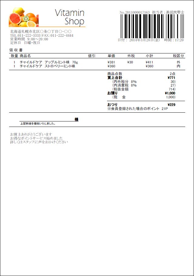 Vitaminは「サーマルプリンタ」と「通常のプリンタ」の両方でレシートを印刷することができます