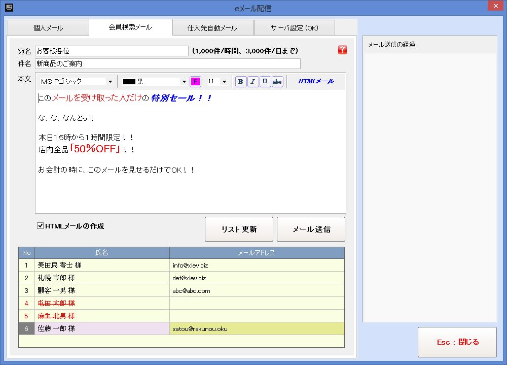 また、お客さんを指定して個別にもメールできますので「商品入荷の連絡」などもできますよね
