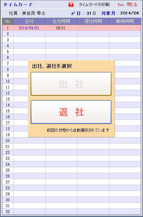 レジでピッピッと出勤時間、退社時間の記録ができます
