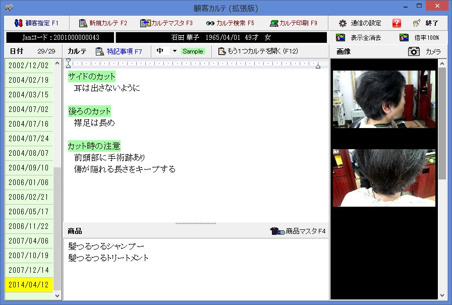 「拡張カルテ」は、お客さんの情報を写真付きで管理できます